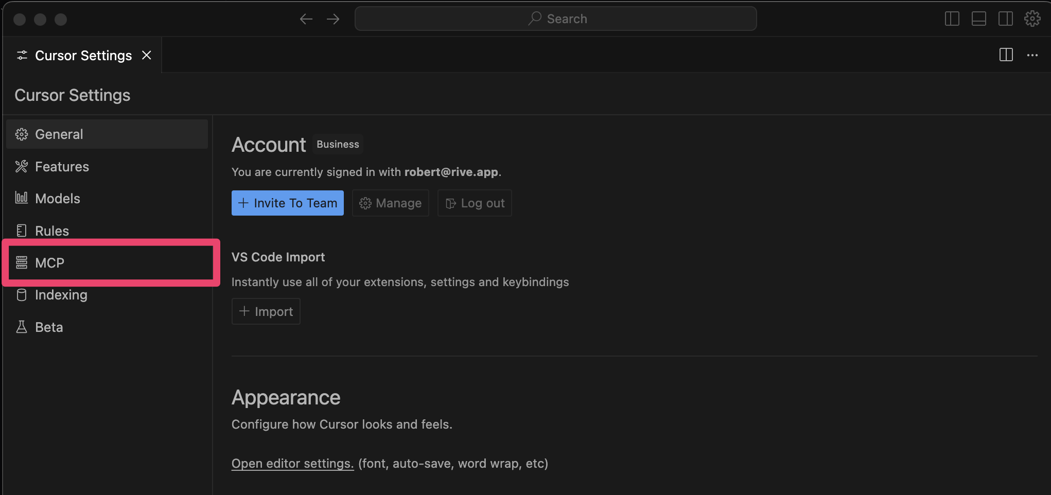 If everything was installed correctly, you should see Rive as an available MCP server